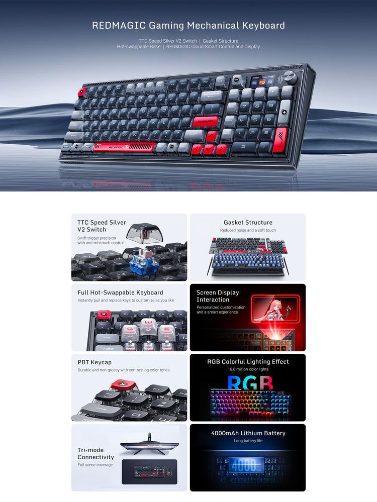 TTC Speed Silver V2 Switch | Gasket Structure | Hot-swappable Base | REDMAGIC Cloud Smart Control and Display