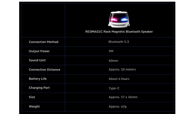 Mag-based and Compact | Cyberpunk Design | RGB Lighting Aesthetic | Bluetooth 5.3 | 6-hours of Power | 3W Tiny and Tough Audio